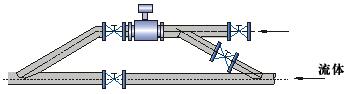 電磁流量計安裝示意圖 應安裝在水平管道較低處和垂直向上處,避免安裝在管道的ZUI高點和垂直向下處;