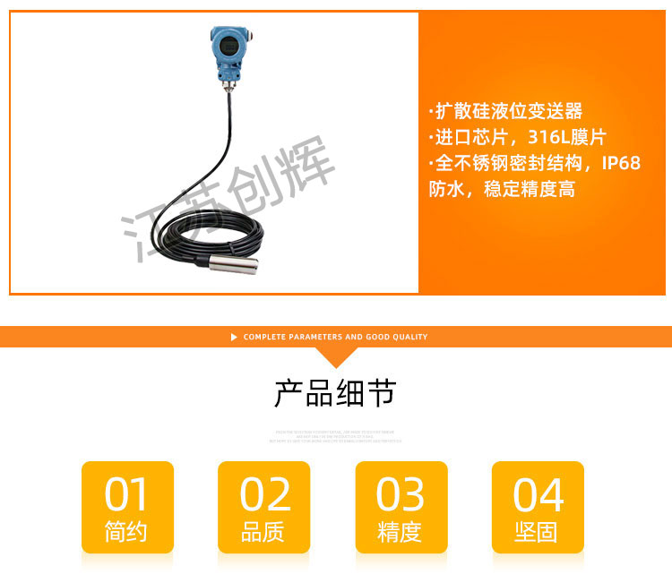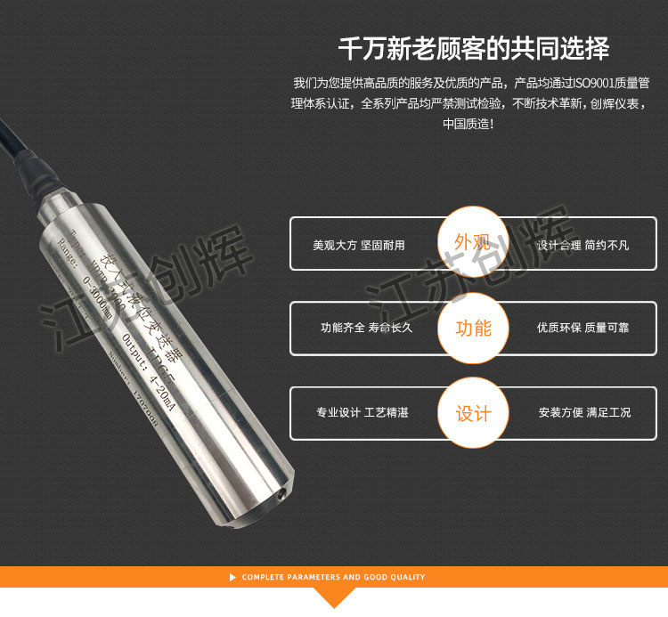 CH-TRS投入式液位變送器是基于所測液體靜壓與該液體高度成正比的原理,采用擴(kuò)散硅或陶瓷敏感元件的壓阻效應(yīng),將靜壓轉(zhuǎn)成電信號。經(jīng)過溫度補(bǔ)償和線性校正,轉(zhuǎn)換成4-20mADC標(biāo)準(zhǔn)電流信號輸出。 投入式液位變送器的傳感器部分可直接投入到液體中,變送器部分可用法蘭或支架固定,安裝使用極為方便。買投入式液位變送器***江蘇創(chuàng)輝,**從事投入式液位變送器儀表的開發(fā)和應(yīng)用.產(chǎn)品安全可靠,耐高溫高壓,技術(shù)**. 歡迎來電咨詢投入式液位變送器價格!
