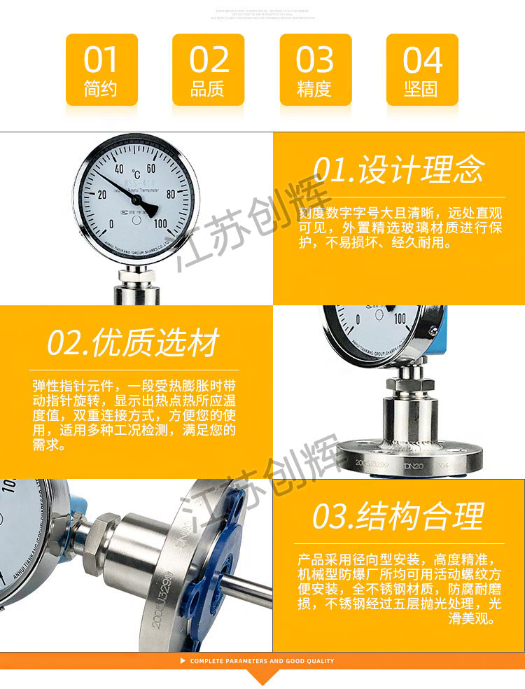 雙金屬溫度計是用繞成螺旋形的熱雙金屬片作感溫元件,并將它裝在保護管內(nèi),一端固定,另一端連接在一根細軸上,軸端裝有指針,當溫度發(fā)生變化時,感溫元件的自由端隨即轉(zhuǎn)動,通過細軸帶動指針產(chǎn)生角位移,在標度盤上指示出溫度的變化。我公司***早參與國產(chǎn)系列雙金屬溫度計的設(shè)計和標準制定工作。雙金屬溫度計是一種適用于測量中低溫的現(xiàn)場檢測儀表,可用來直接測量氣體、液體和其它物質(zhì)的溫度,具有讀數(shù)清晰,堅固特點。
